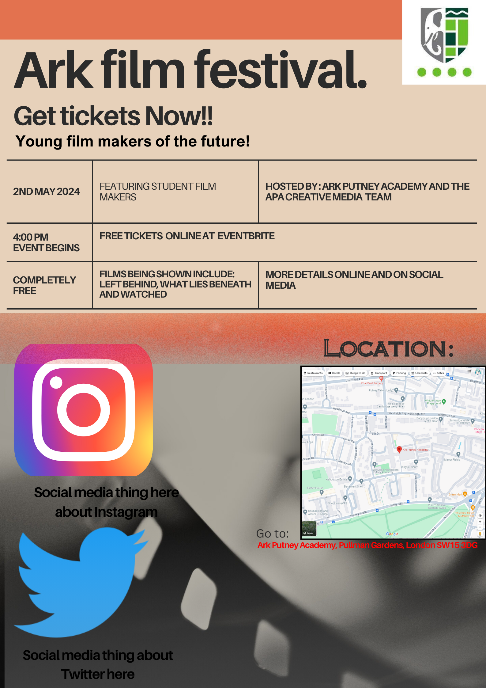 This was the first film poster designed for the Ark Putney Academy film festival.
