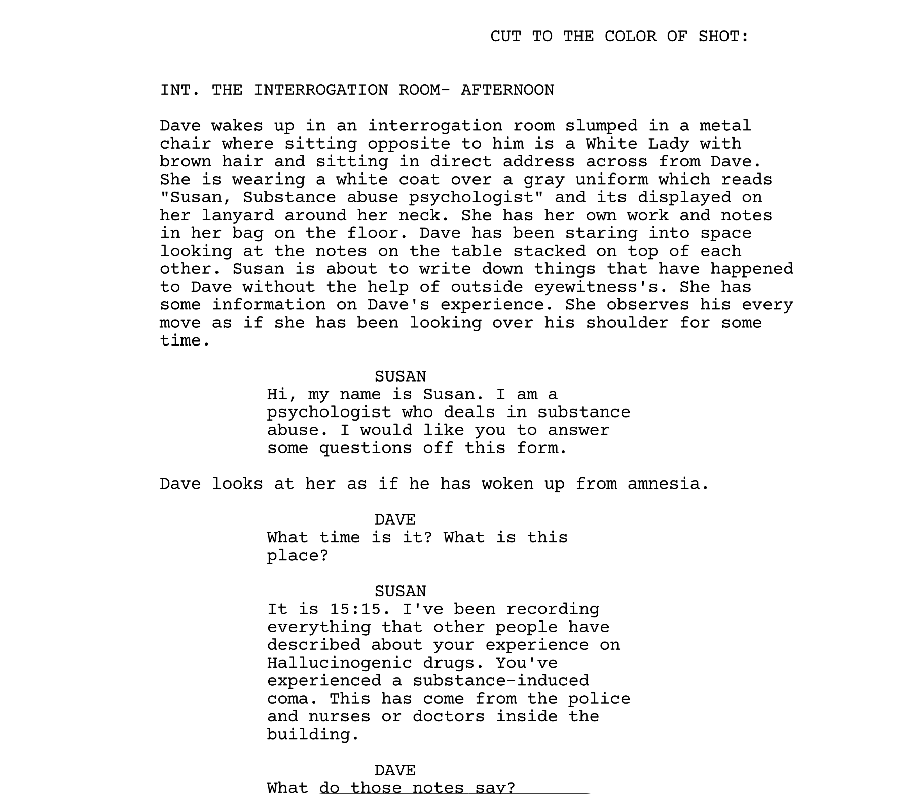 This is the script I wrote for the film called Dave's nightmarish changes.